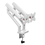 Leadarer dual arms gas spring aluminum and plastic monitor mount with VESA plate LD-MM22 adjusts the posture of screen, and lets you work in a more comfortable ergonomic position. Leadarer focuses on improving the stability and efficiency. The gas spring aluminum and plastic monitor mount has VESA plate with keyhole slots. Flexible gas spring arm can achieve +90° to -45° tilt, 180° swivel, and 360° The dual arms monitor mount also is a professional space saver.